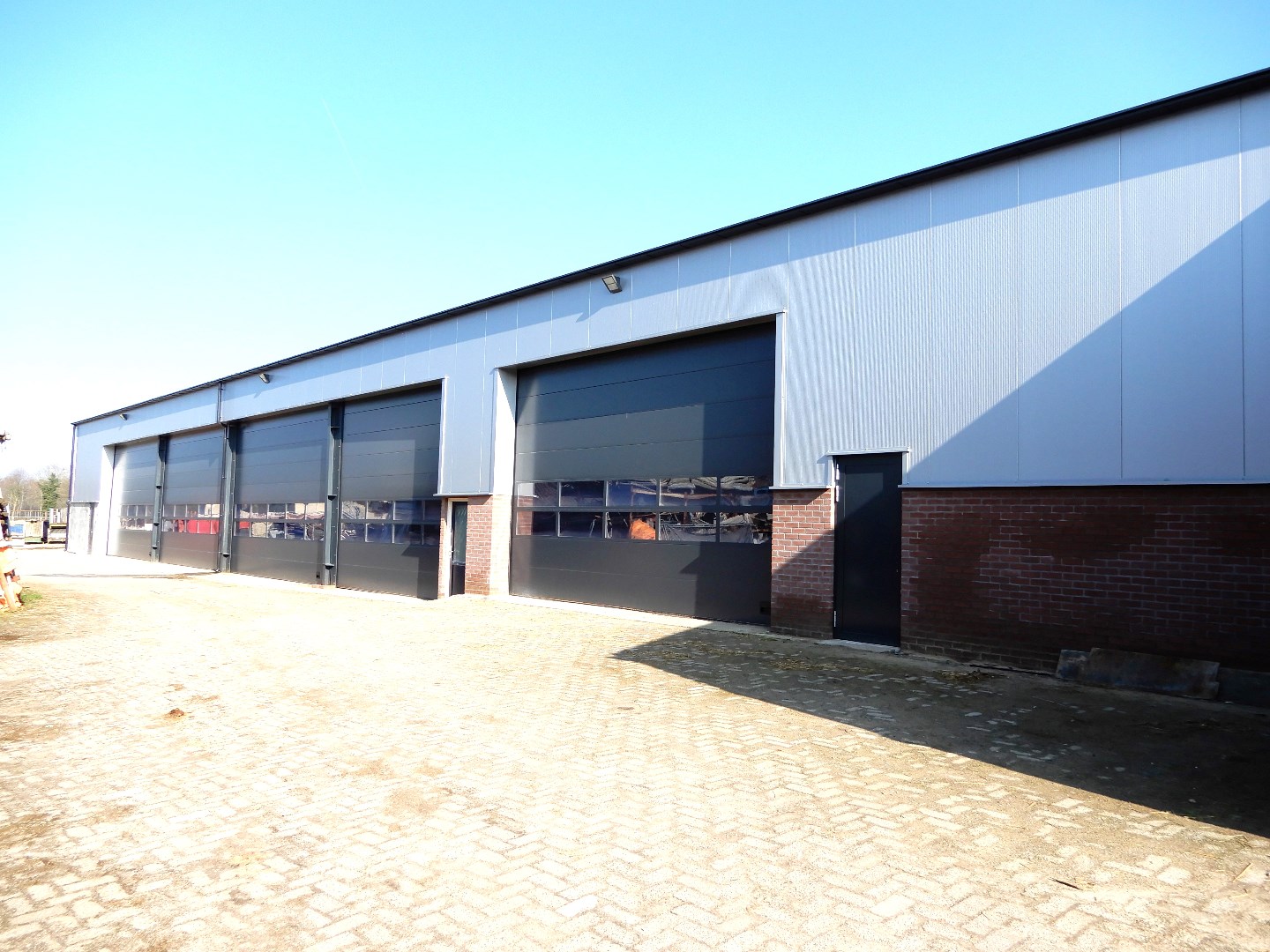 Geïsoleerde loods met grote overhead deur en loopdeur, alsmede ledverlichting.
