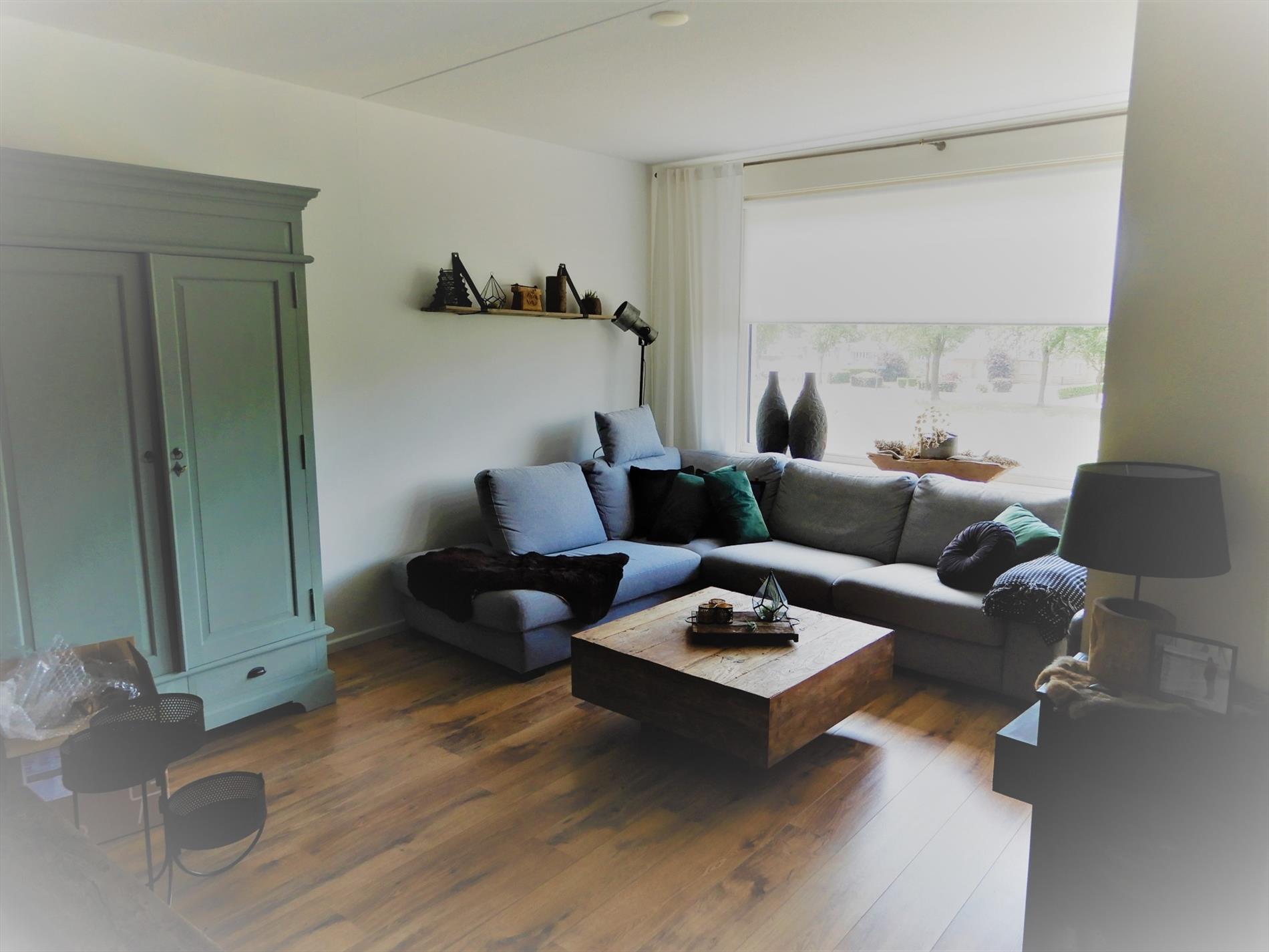 Algemeen: voorzien van laminaat vloer, screen, rolgordijnen, rail, en grotendeels gordijnen, luxaflex.