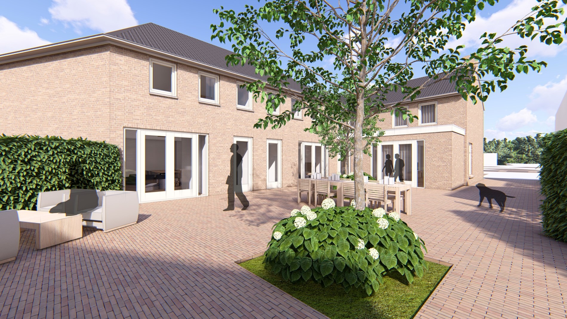 In het centrum van Schaijk is het voormalig winkel-woonhuis omgebouwd naar 4 woningen met een gezamenlijke binnentuin.
