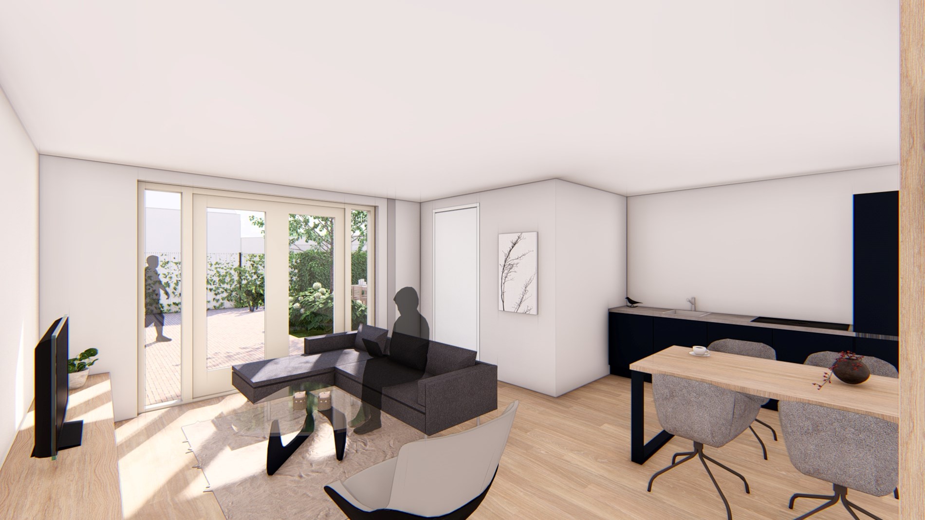 Iedere wooneenheid heeft een woonkamer met open keuken inclusief inbouwapparatuur op de begane grond en 2 slaapkamers en badkamer op de 1e verdieping.