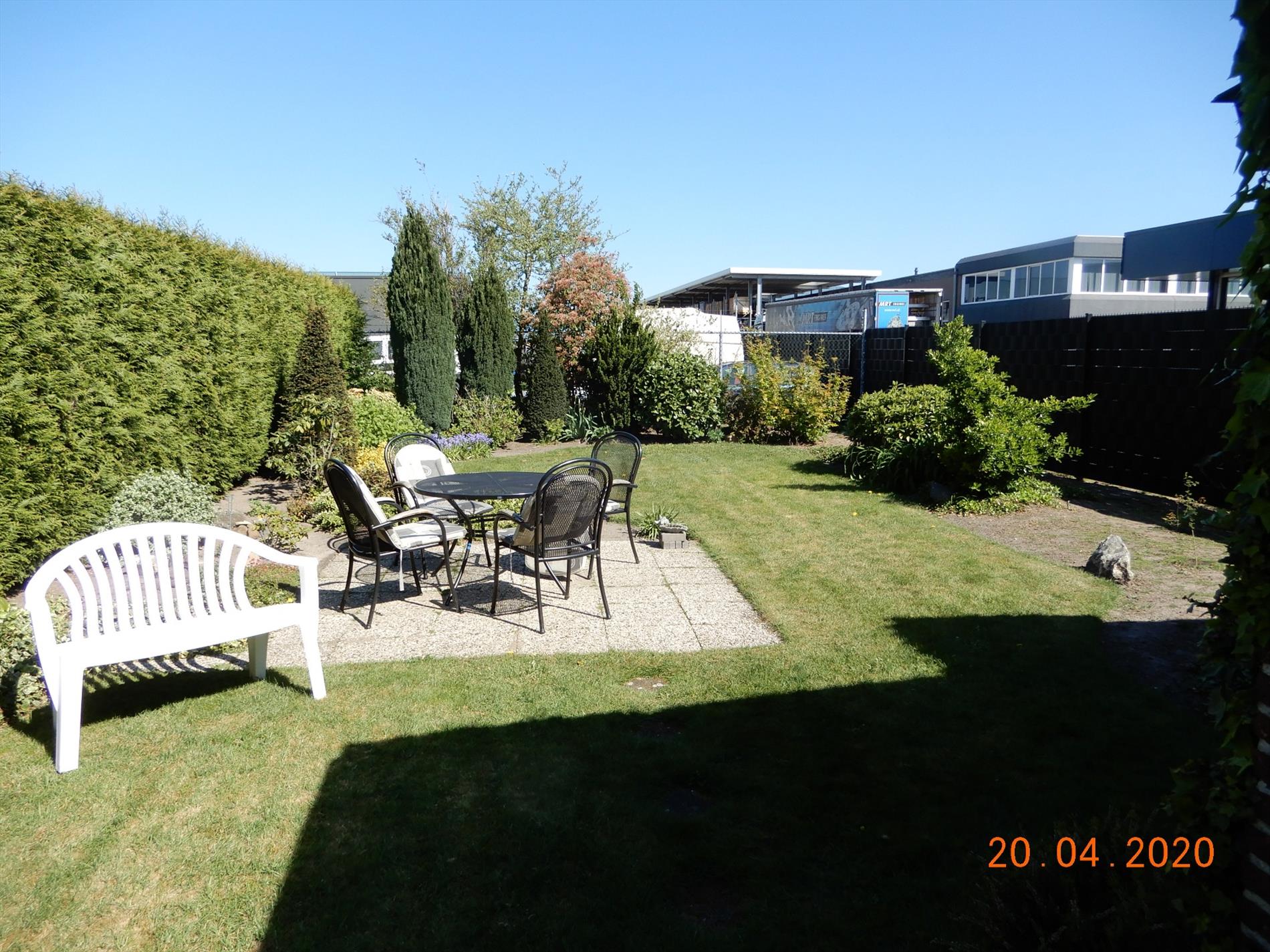 Grote voortuin met royale oprit voor meerdere auto's, grote achtertuin op westen gelegen.