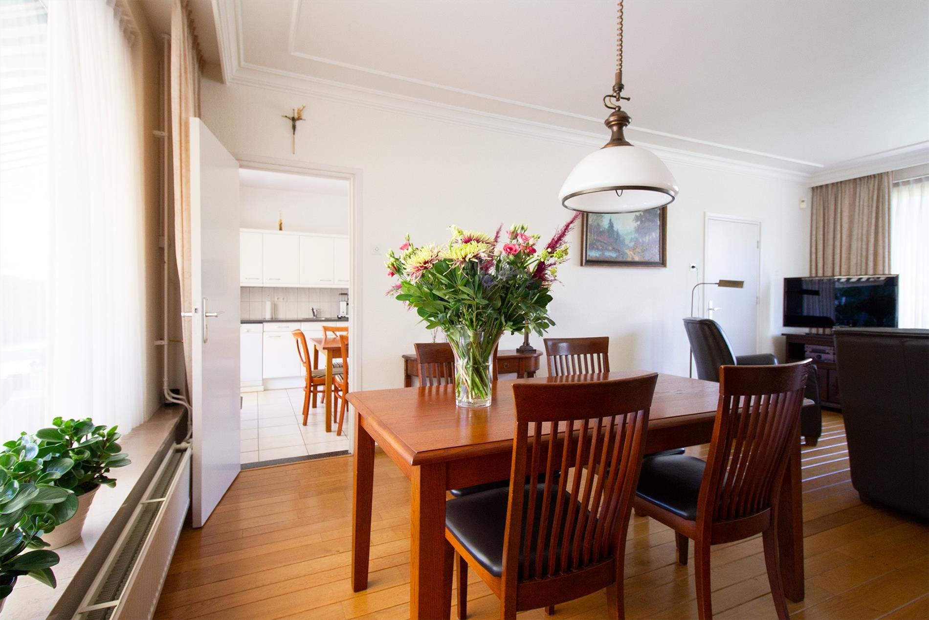 Woonkamer met parketvloer en plafond met sierlijsten. Keuken met inbouwapparatuur t.w. koelkast, vaatwasser, afzuigkap, kookplaat, magnetron - oven en inbouwkast. Badkamer met douche, ligbad en wastafel met ombouw.