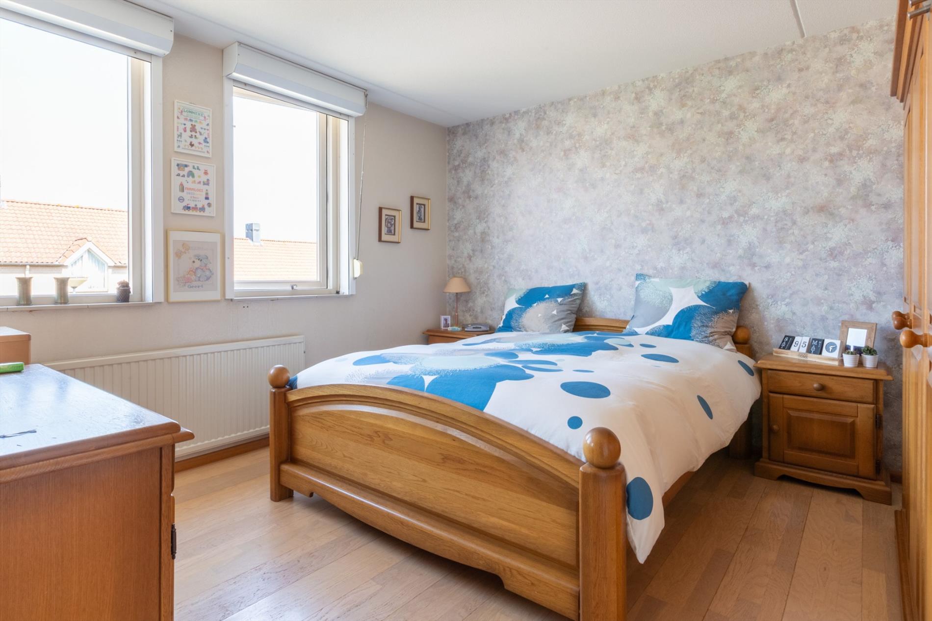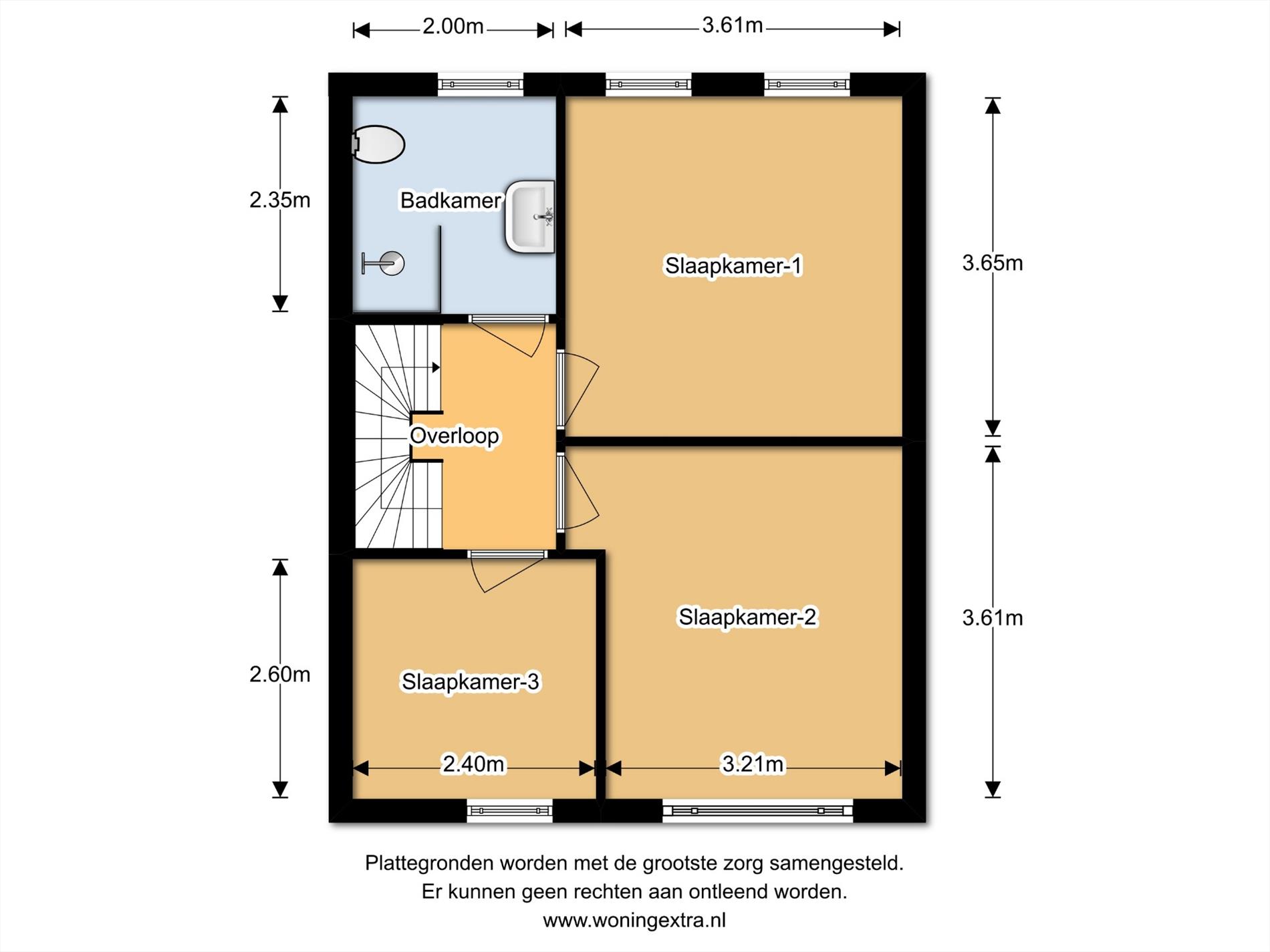 Overloop met vaste trap naar 2e verdieping, 3 slaapkamers voorzien van rolluiken en laminaat vloeren.