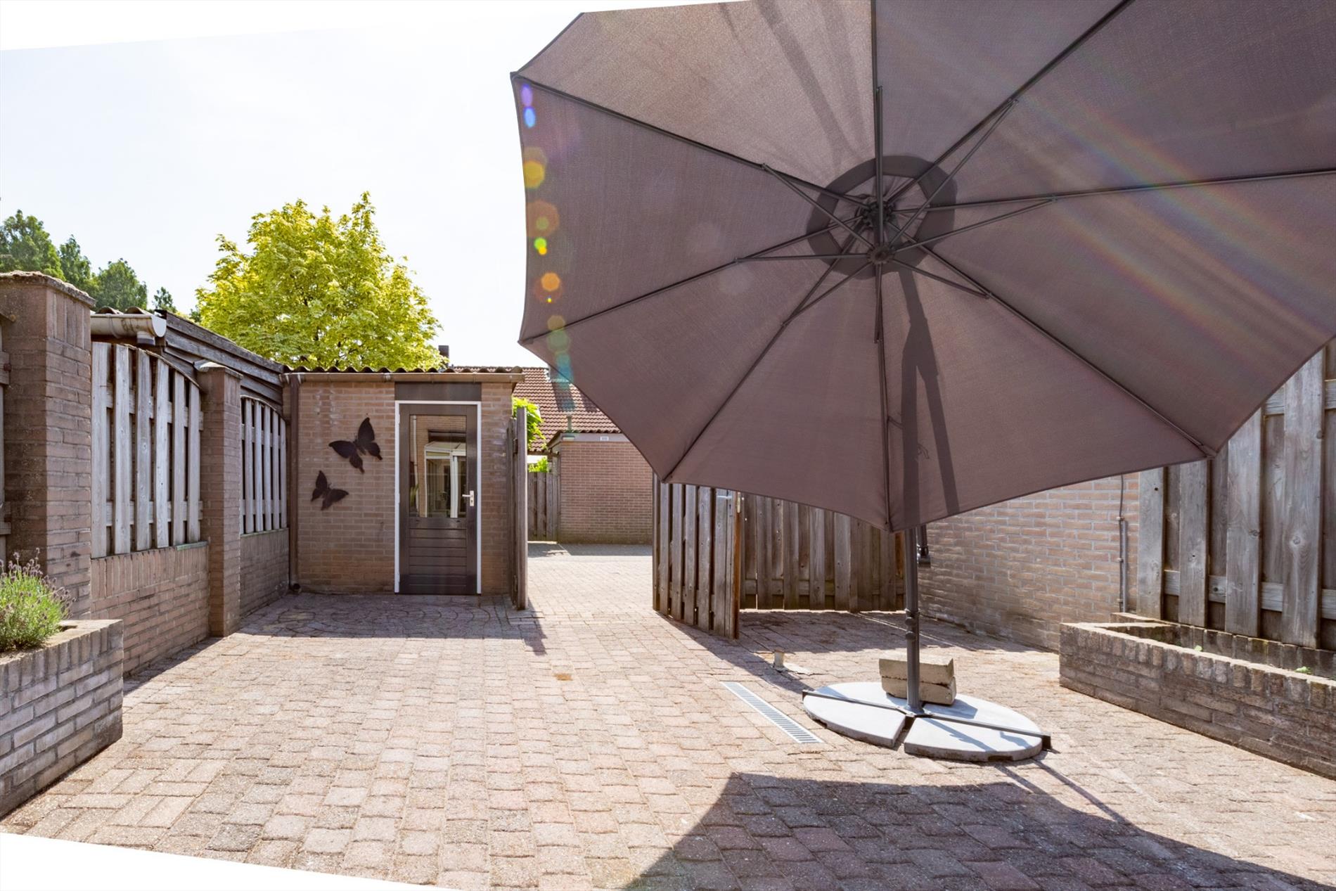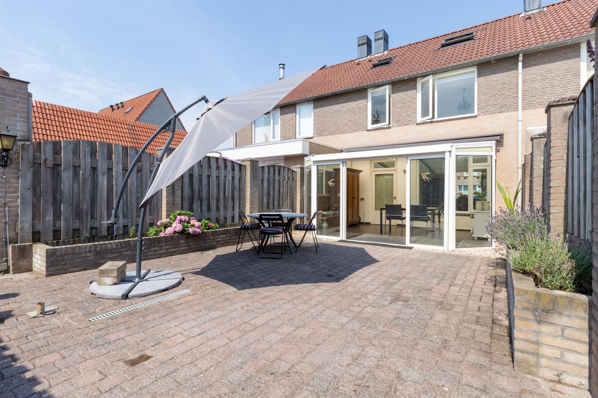 Hal met toilet, verdiepingstrap, meterkast, inbouwkast.