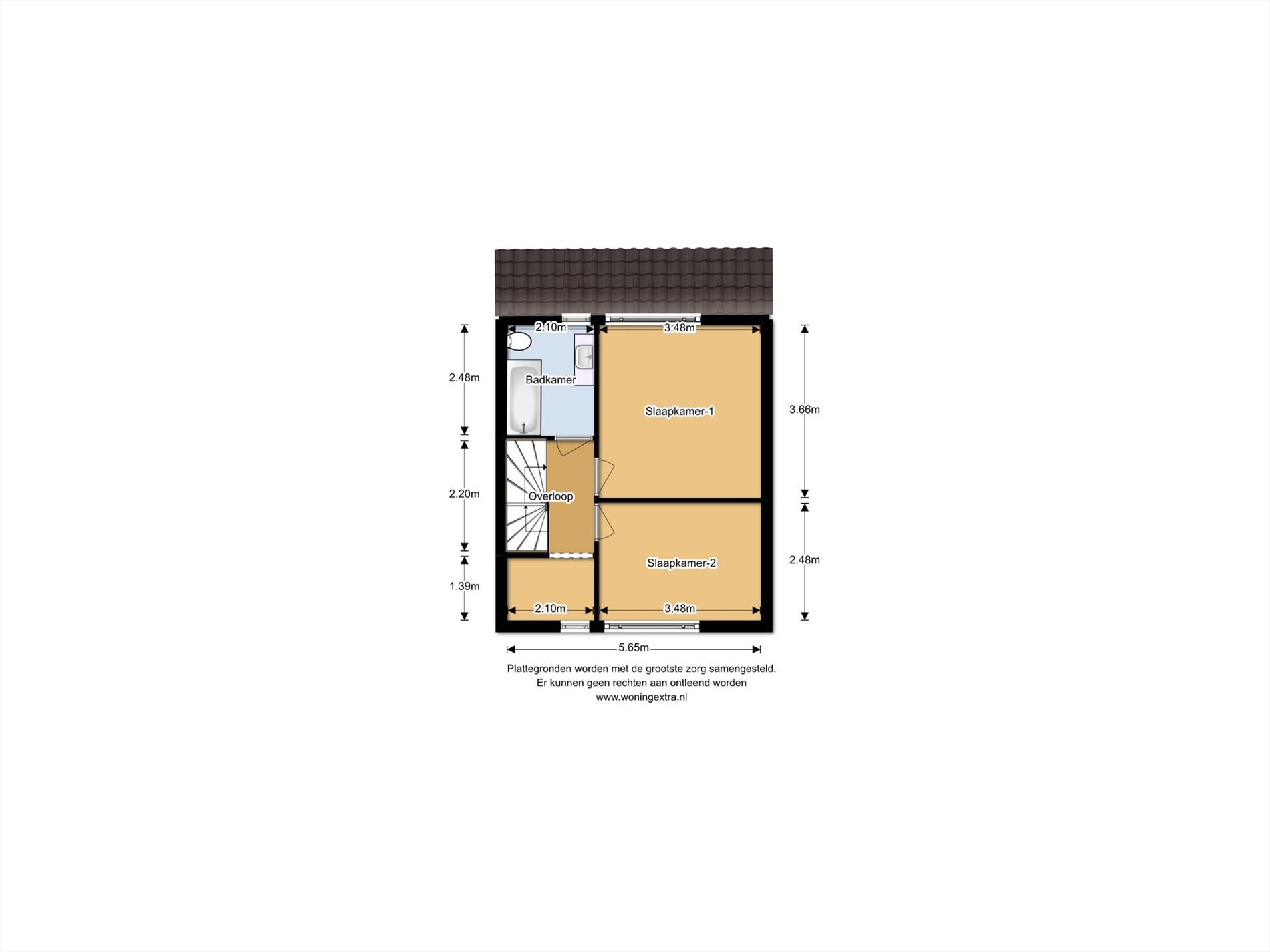 Open zolder: met Velux dakraam, wasmachineaansluiting.