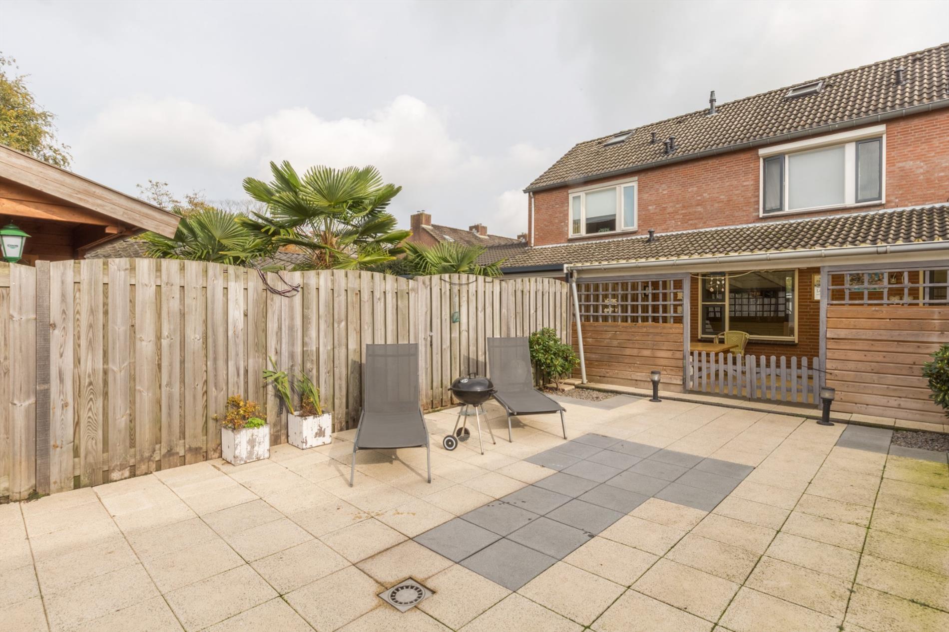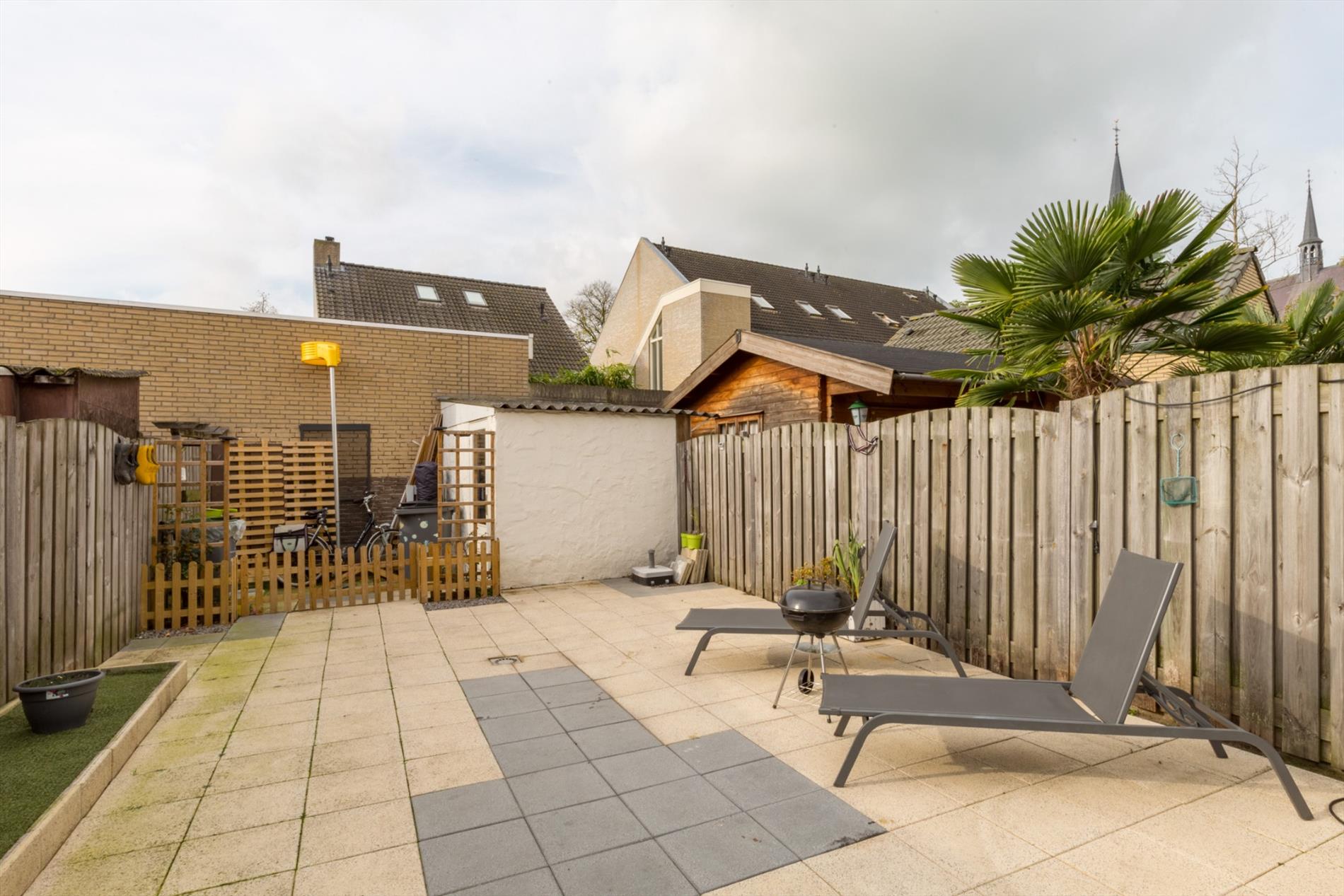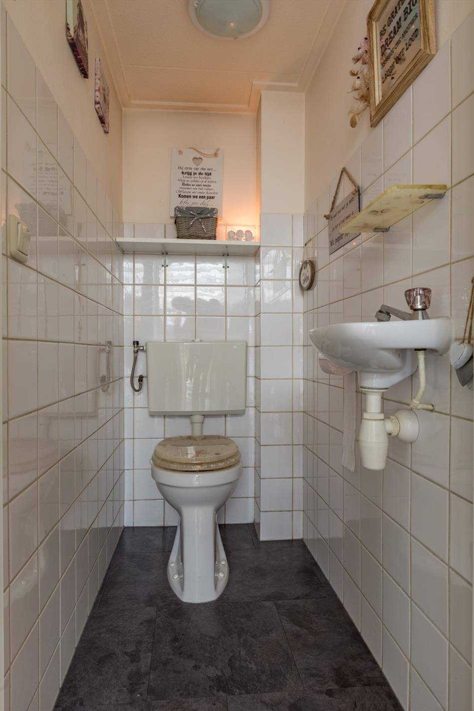 Achterhal: toilet met fontein, Laminaat vloer, tuindeur.