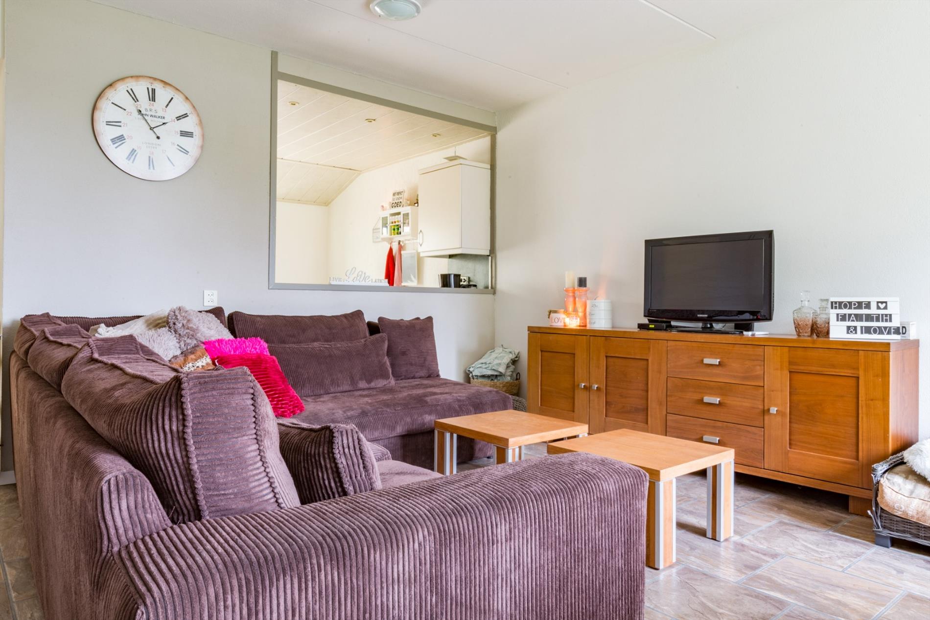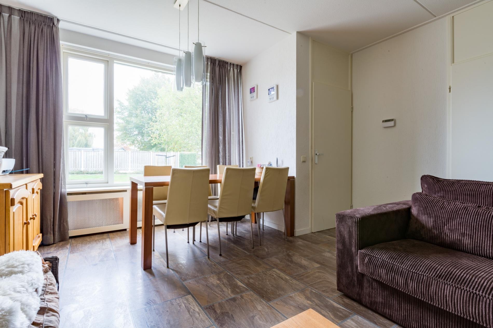 Woonkamer: circa 26 m2, trapkast met elektra 4 groepen en aardlek, sierpleisterwerk, Laminaat vloer.