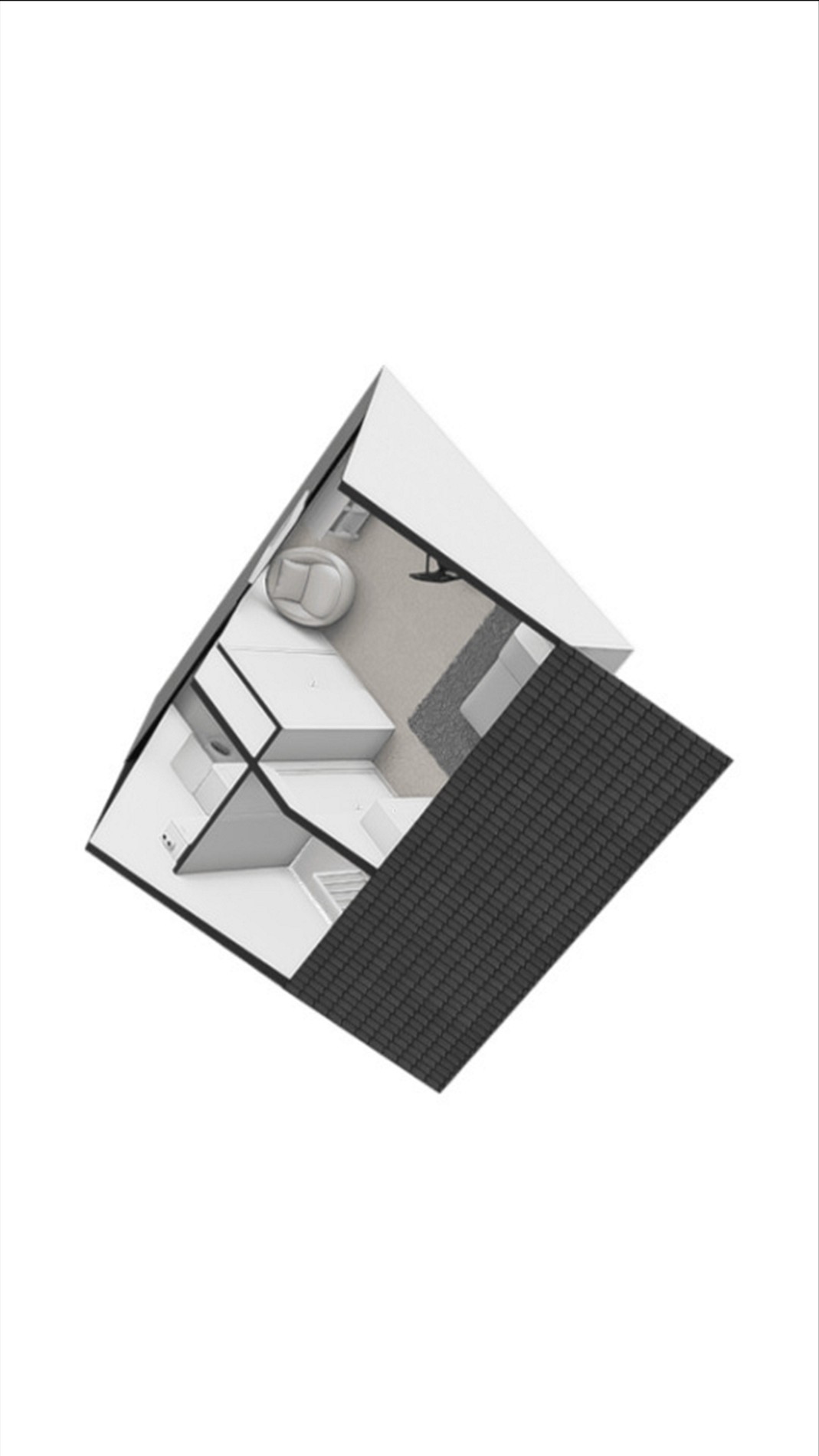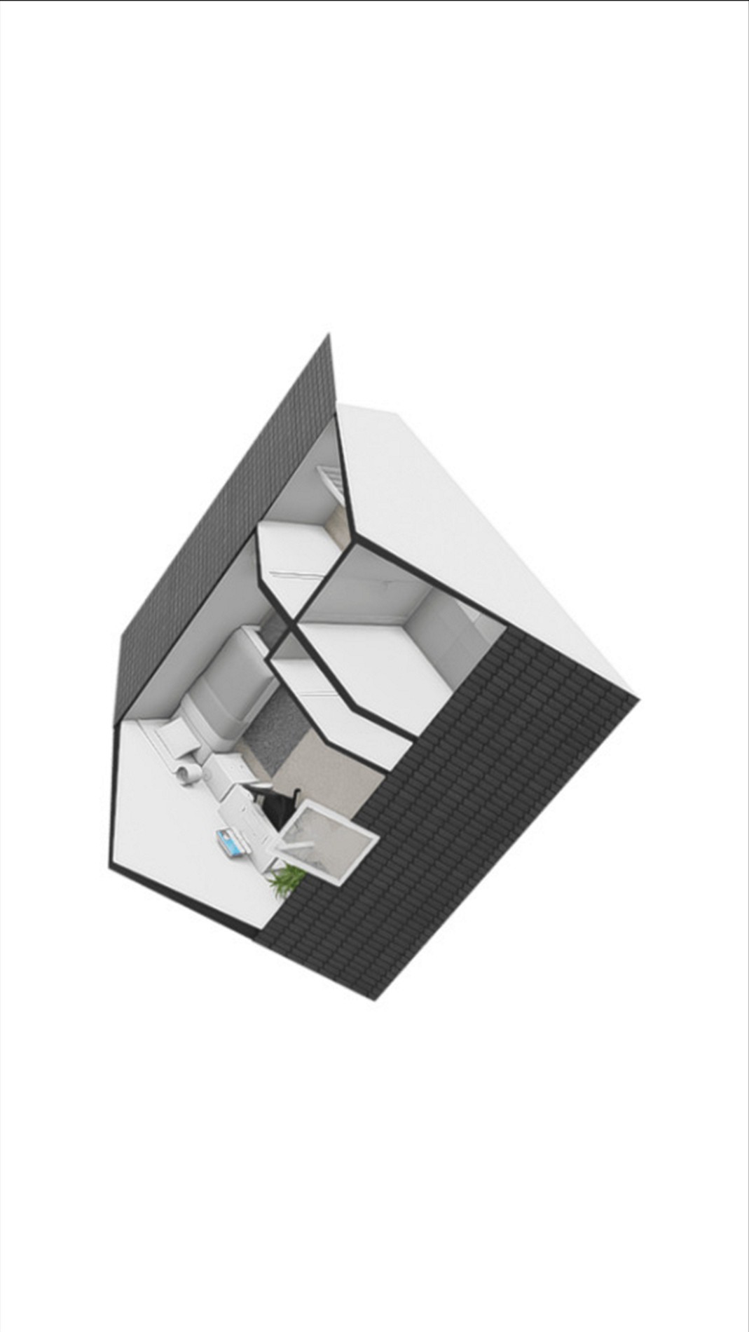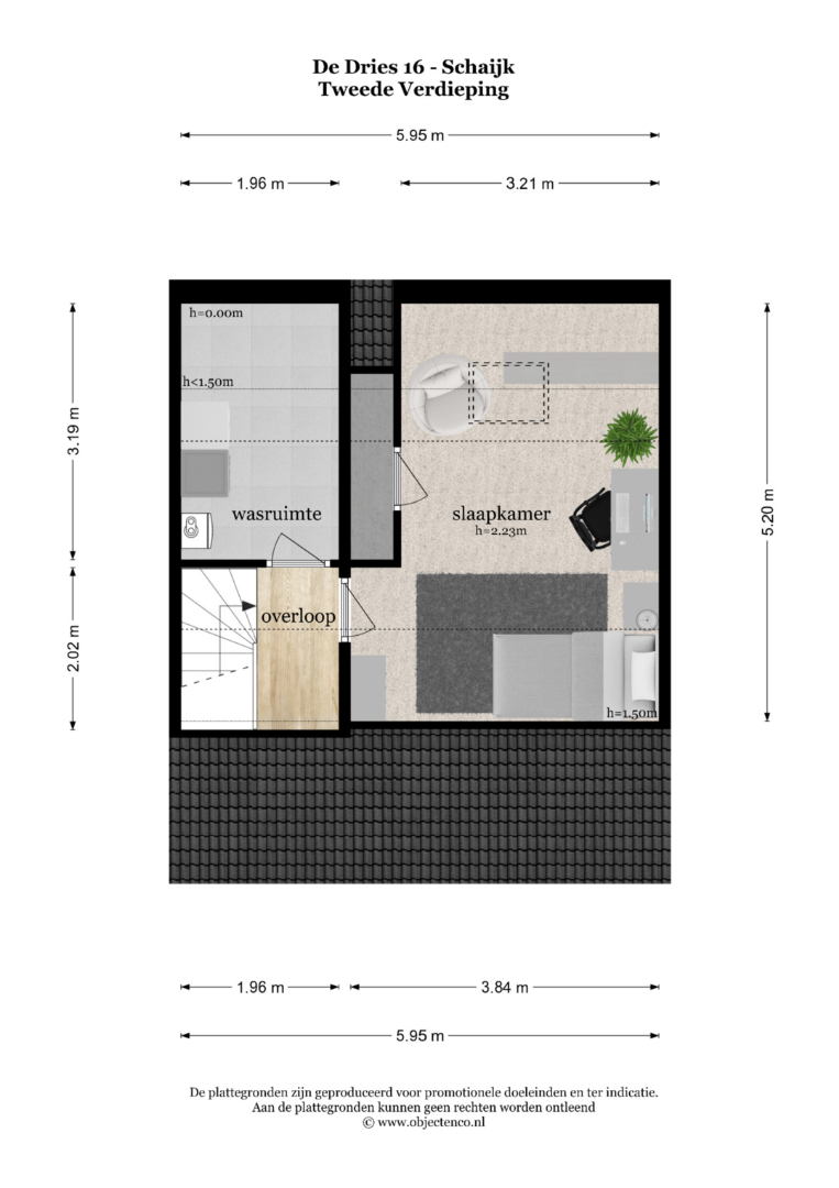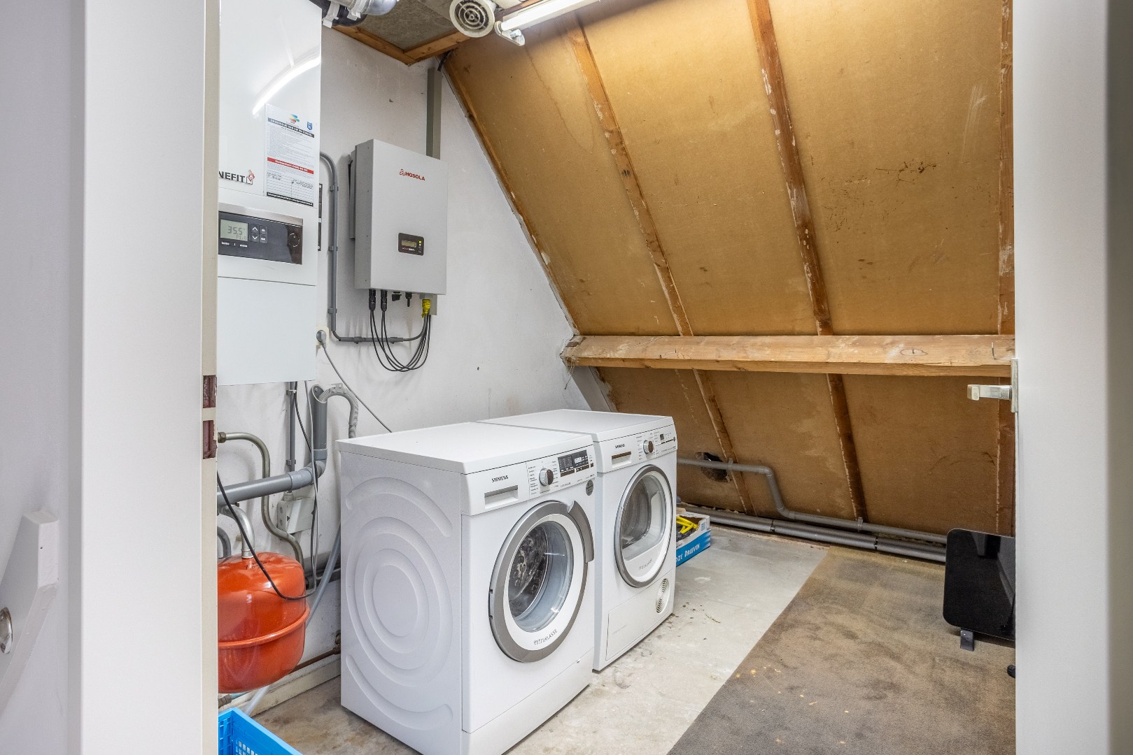 2e verdieping: overloop, zolderkamer met Velux dakraam, berging met CV opstelling, aansluiting wasmachine-droger en omvormer zonnepanelen.