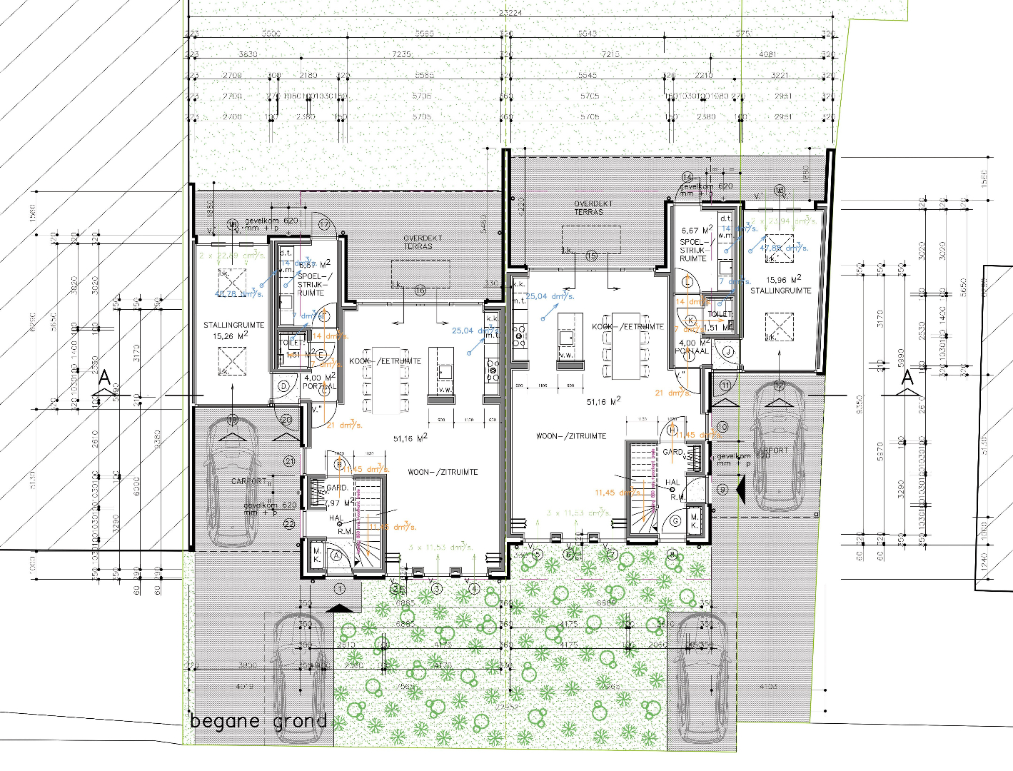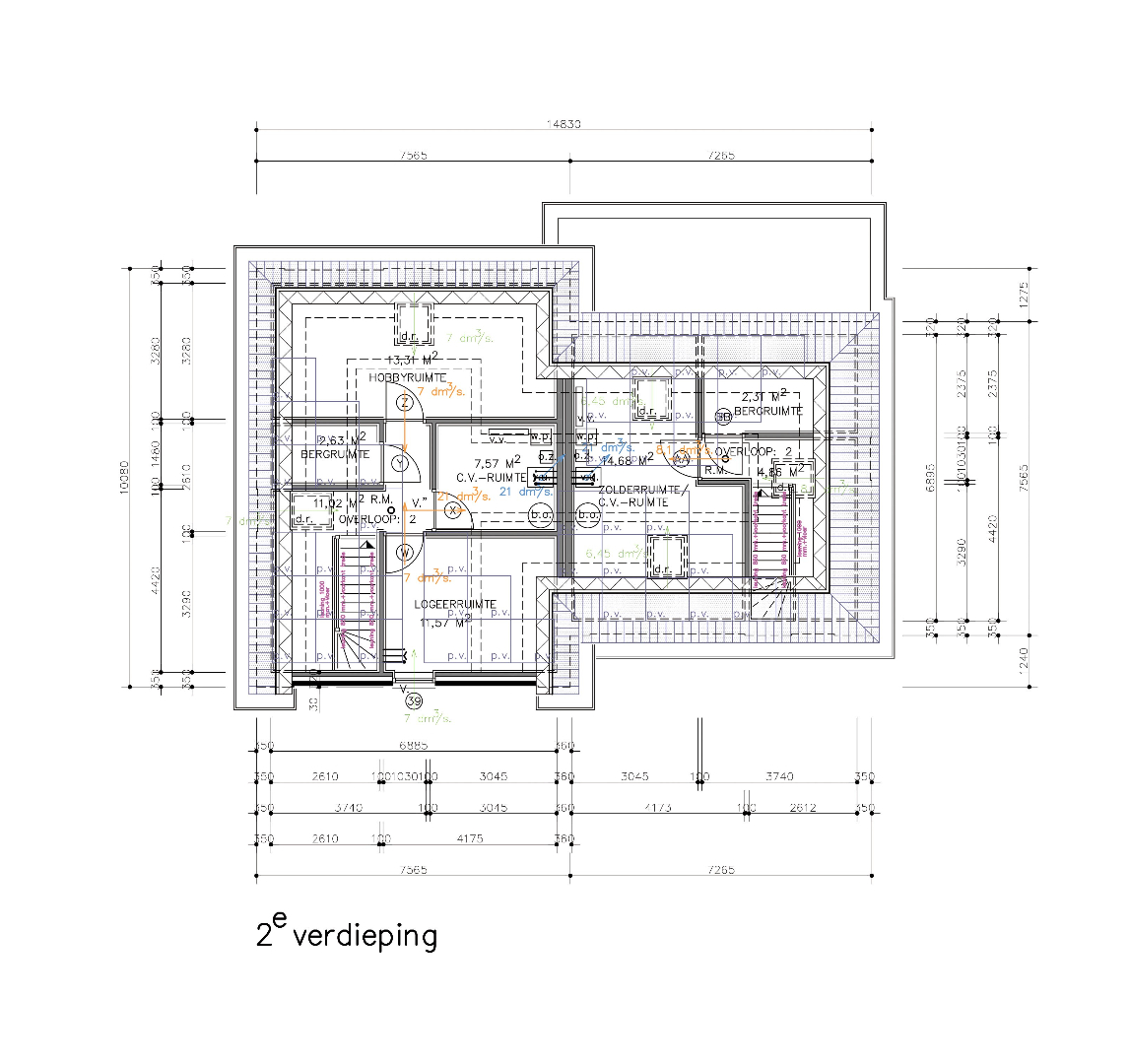 De opgegeven maten m2 en m3 zijn gemeten vanaf de bouwtekening.