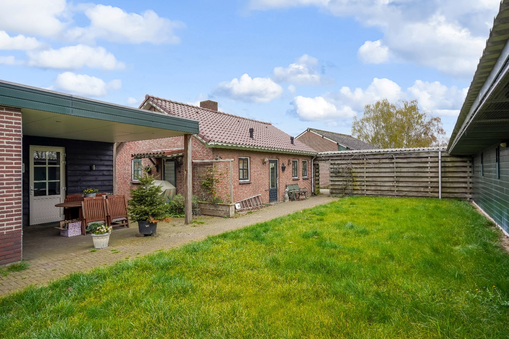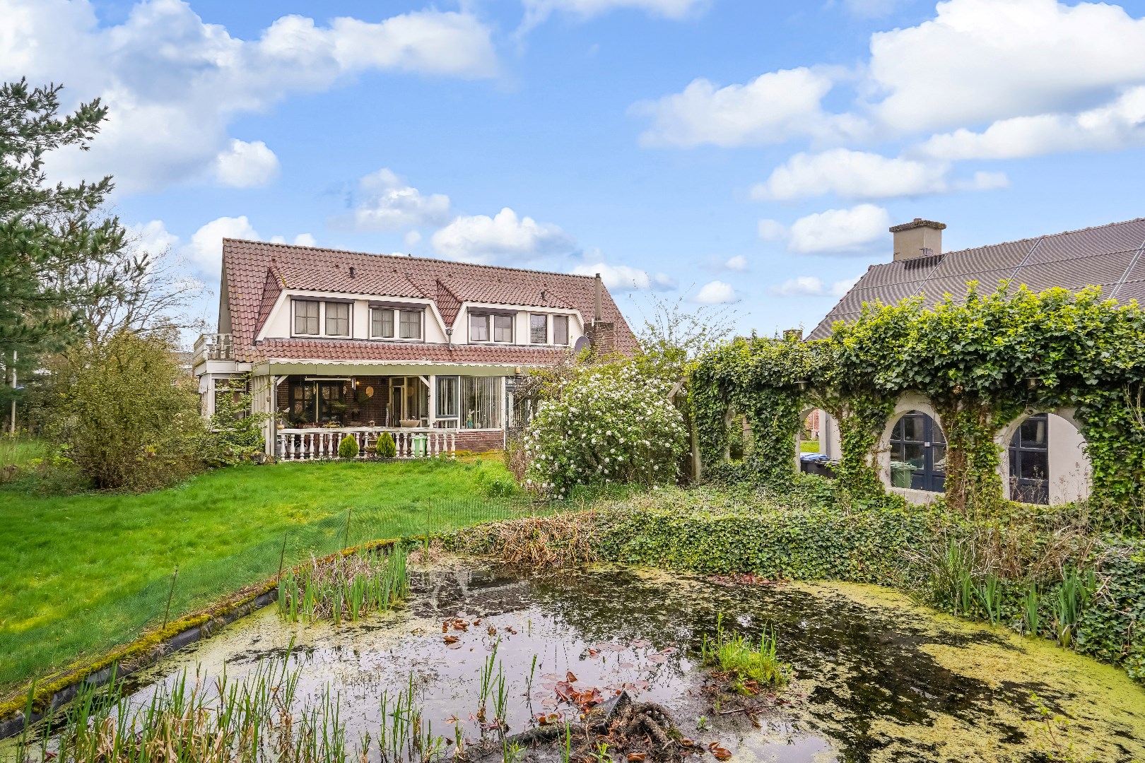 Vrijstaande woning met aanleunwoning en diverse bijgebouwen op groot perceel