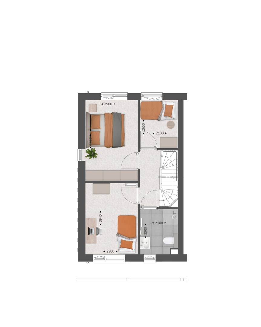 De tweede verdieping biedt je een zee aan ruimte. Hier vind je de aansluitingen voor de wasapparatuur en heb je de mogelijkheid om een aparte wasruimte te maken en een thuiskantoor of extra slaapkamer met dakkapel aan de voor- én/of achterzijde.