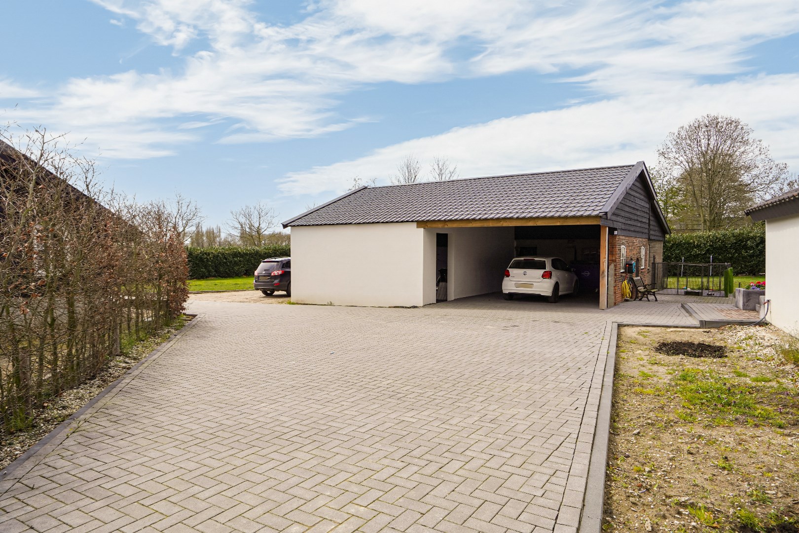 berging - garage / stalling, carport, 2 paardenboxen (ruimte voor extra box).
