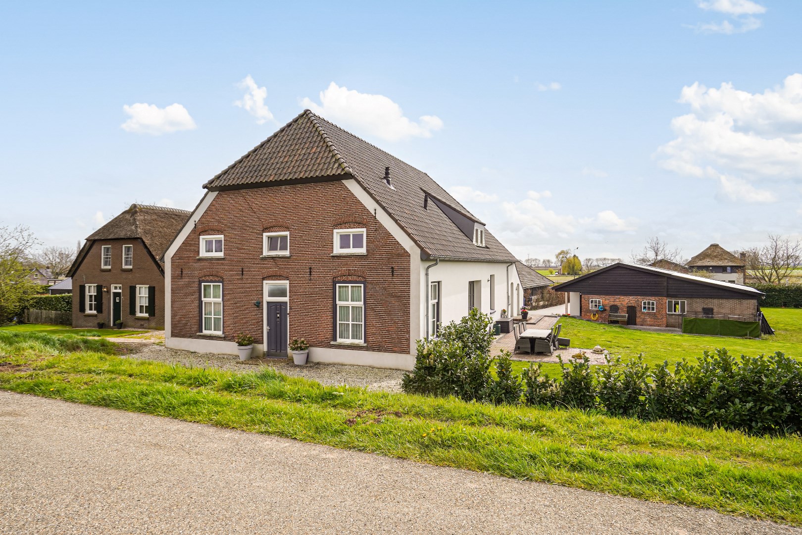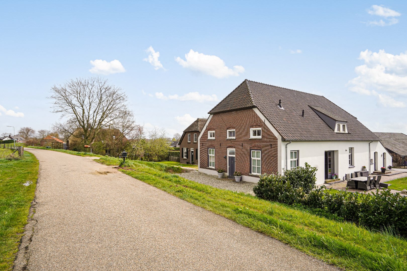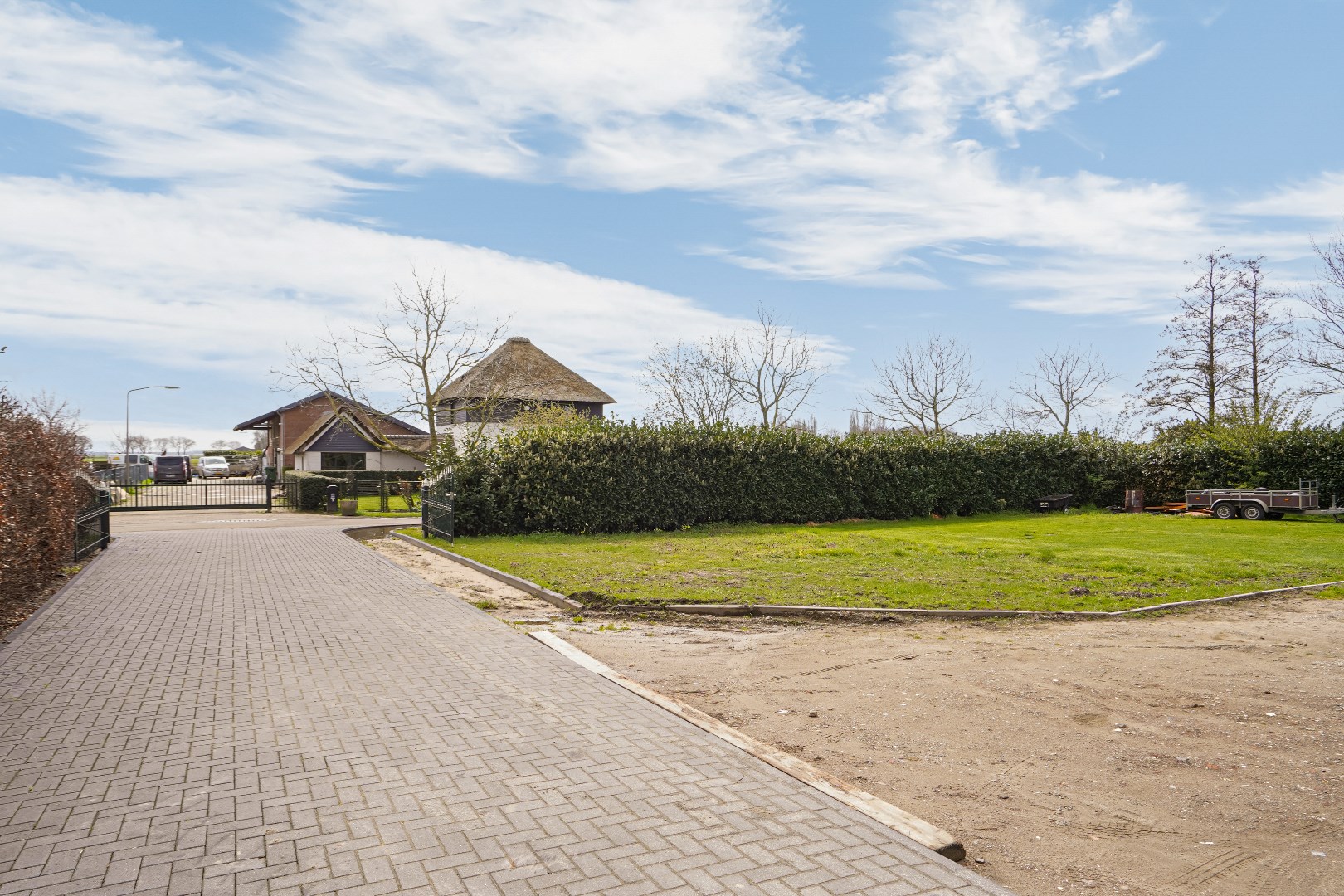 Rondom tuin, oprit vanaf dijk en oprit aan de achterzijde, inrit met parkeren via Achterstraat tegenover nr. 3.