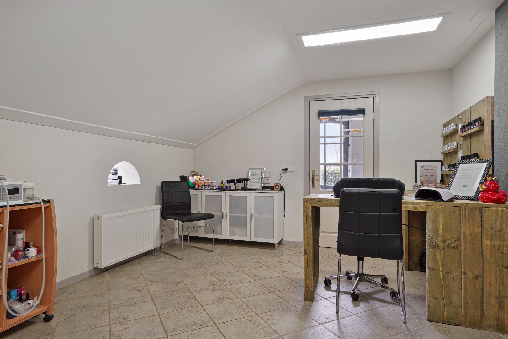 Praktijkruimte / salon met aansluitend magazijn.