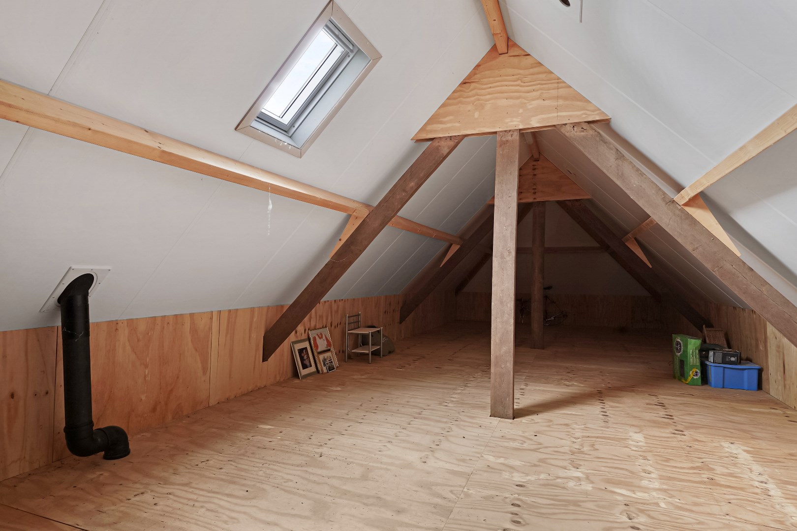 grote zolder bevloerd en voorzien van nieuwe kap.